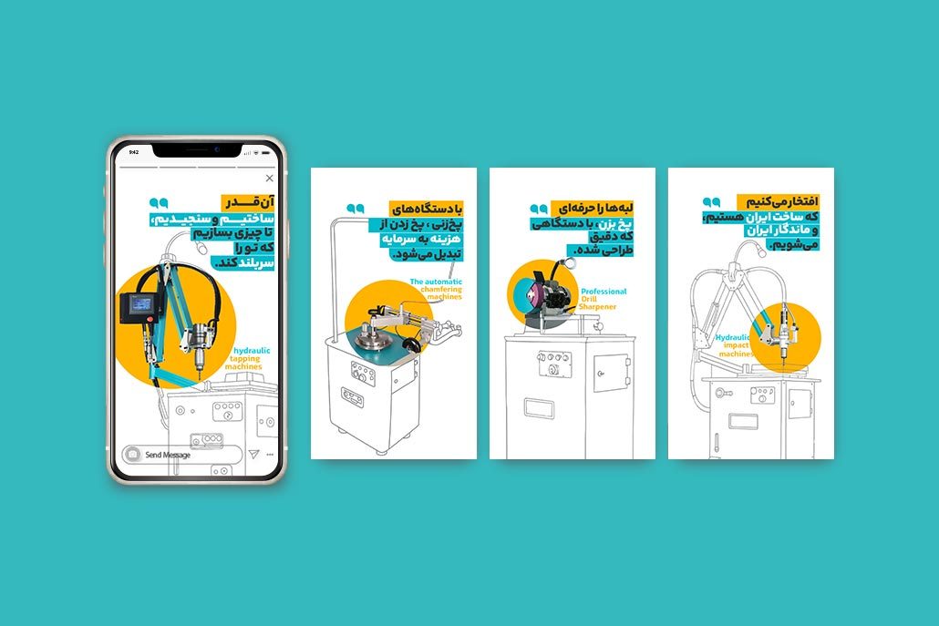 با طراحی لوگو و معرفی هویت برند، در قالب موشنگرافیک و پستهای گرافیکی، تلاش کردیم تا شخصیت برند را بهروشنی به مخاطبان بشناسانیم، برندی صنعتی، پویا و آیندهنگر.